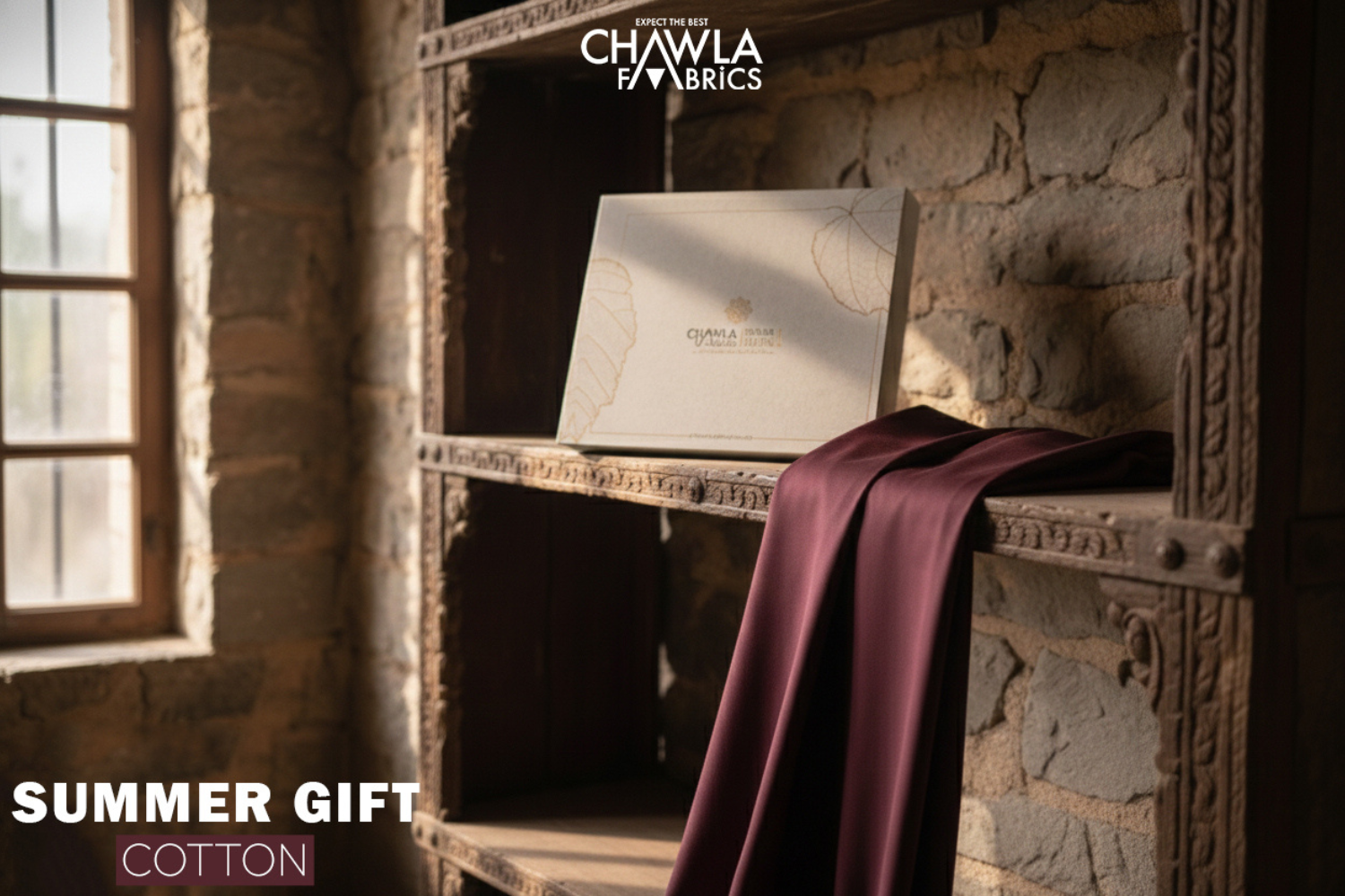 Summer Gift Cotton by Chawla Fabrics is a premium-quality cotton fabric designed for ultimate summer comfort, featuring a soft texture, breathable weave, and elegant finish ideal for daily wear and festive occasions. Crafted to perform in warm climates, this fabric offers durability, color retention, and a refined look, making it a perfect choice for men’s shalwar kameez and tailored summer outfits.